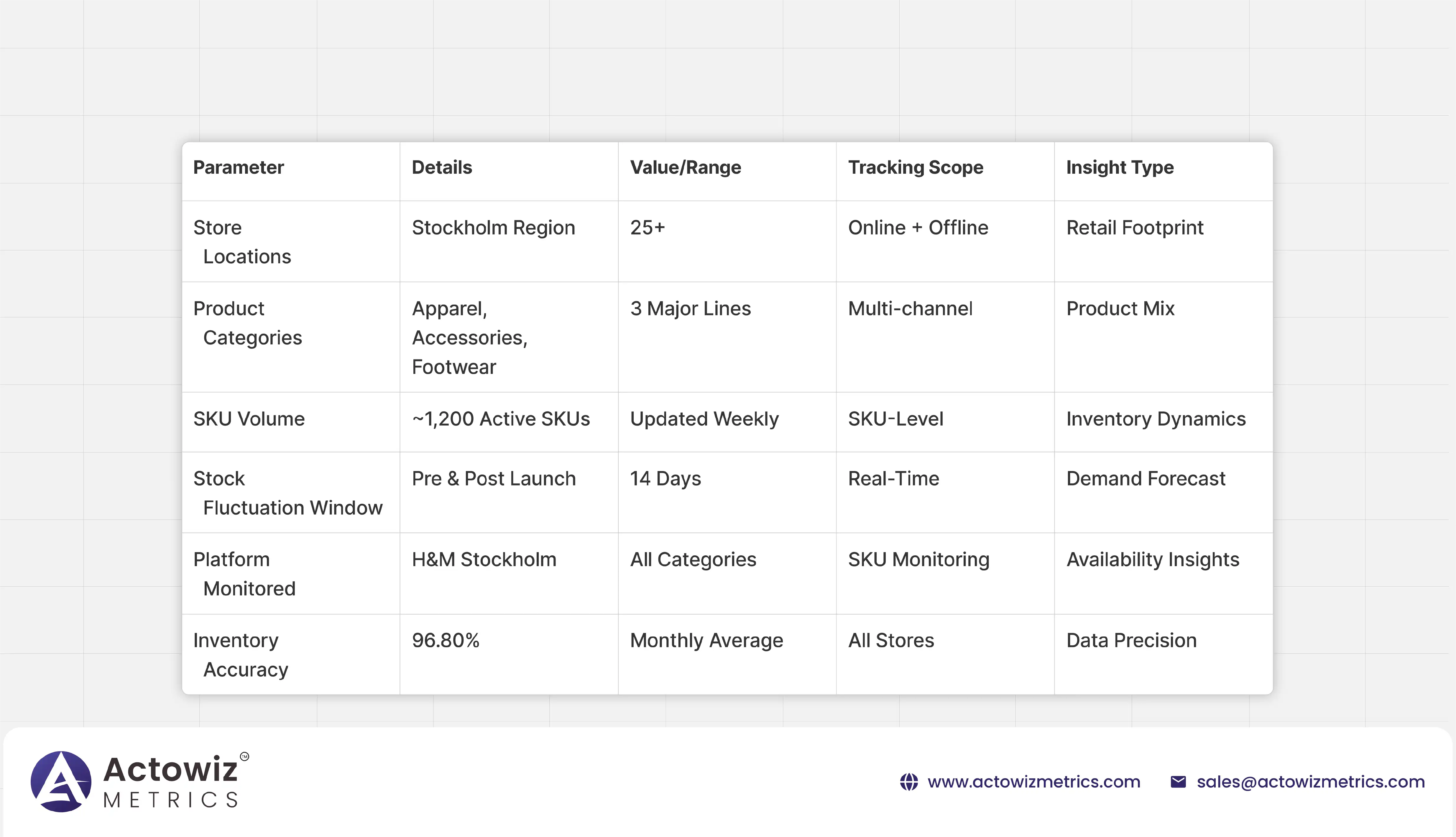 The client, a prominent fashion retailer based in Stockholm, partners with global brands to manage high-demand product launches across multiple categories, including apparel, accessories, and footwear. Despite their market success, the brand faced difficulties synchronizing product availability across various sales channels. To overcome this, they sought a robust solution for H&M SKU Tracking in Stockholm that could deliver precise, SKU-level insights before, during, and after product launches. By collaborating with Actowiz Metrics, the retailer aimed to streamline inventory flow, predict stock fluctuations, and strengthen supply chain responsiveness. The solution incorporated SKU-level product monitoring on H&M in Stockholm, providing visibility into inventory dynamics across different product lines to enhance decision-making and consumer experience.